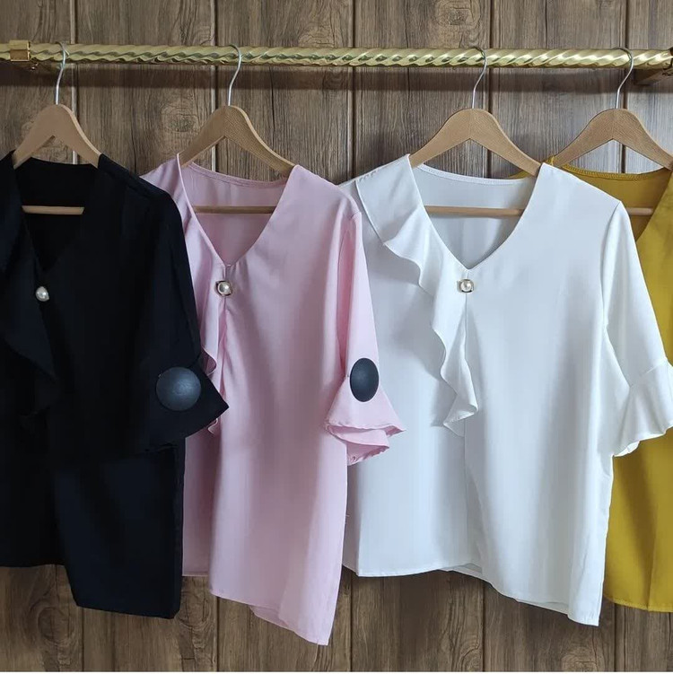 شومیز یقه حلزونی آستین کوتاه